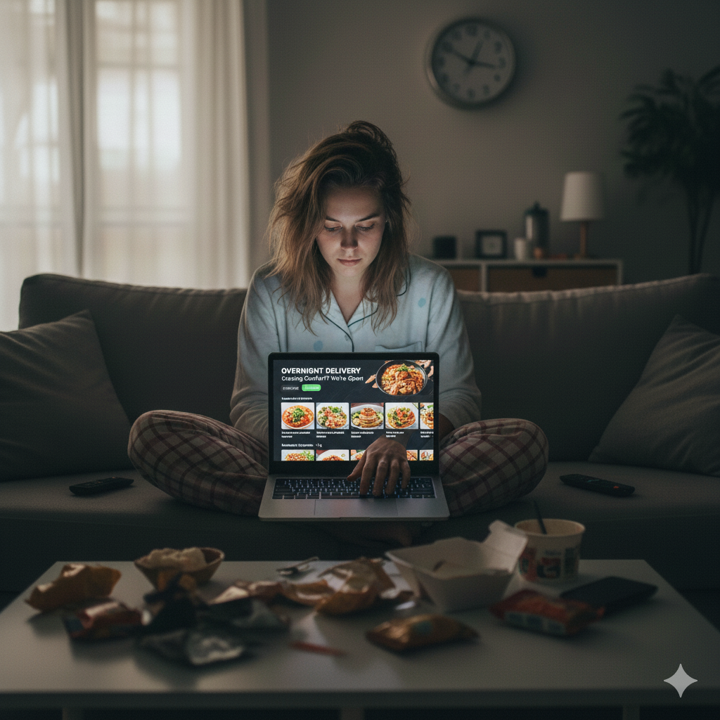 Consumer behavior during late hours differs from daytime ordering trends. Comfort, speed, and portion value take priority.